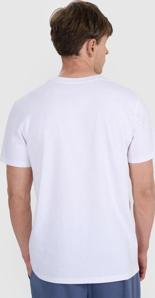 "Discover the M2257 sporty T-shirt from 4F, specially designed for men who value comfort and style. This T-shirt is made of high-quality cotton and offers a pleasant feel thanks to the single jersey knit. The padded and warming properties make it perfect for cooler days or as a comfortable layer under a jacket. Whether for sport or leisure, this Tshirt will win you over with its versatility and sporty look that can be easily integrated into any wardrobeu00e4s"