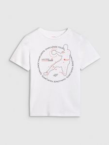 "The T shirt impresses with its smooth surface and the striking print on the front, which adds an individual touch to any outfit. The round neckline is finished with a light ribbed band for added comfort. Made from 100% cotton, it is not only soft and pleasant on the skin, but also hard-wearing and durable. Whether for leisure activities or everyday use, this T-shirt is a must-have for every closet."