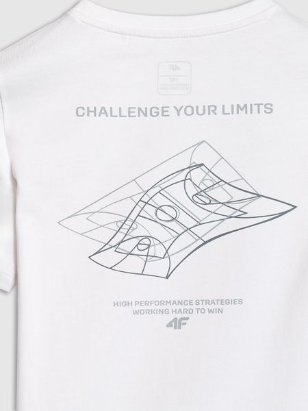 "A special highlight is the inspiring print on the back, which shows a playing field with the motivating slogan u201eChallenge your limits. High performing strategies. Working hard to winu201cshows. On the front, this incentive is underlined by the lettering u201eChallenge your limitsu201c. The round neckline with ribbing ensures additional comfort and a pleasant fit. This 100% cotton T-shirt is impressively soft, hard-wearing and skin-friendly, making it an essential part of your wardrobe."