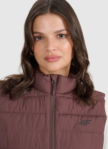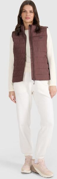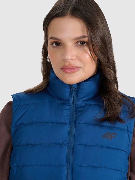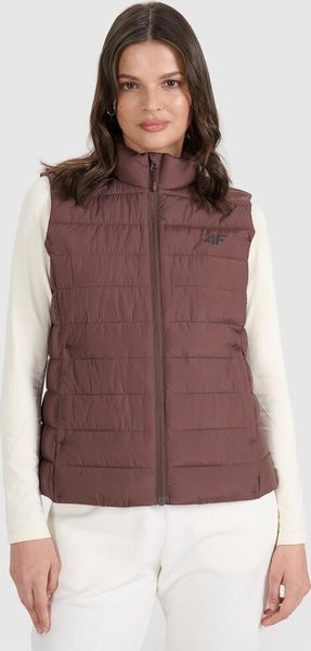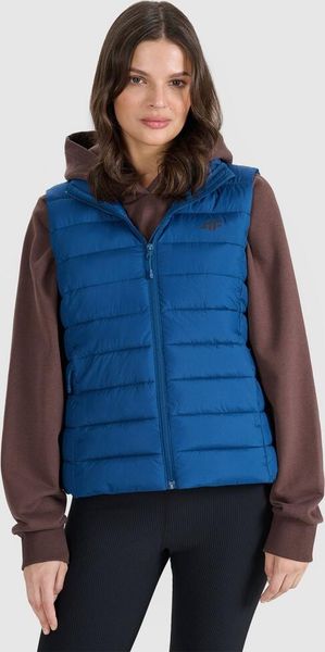 "The F218 women's down gilet from 4F is the ideal choice for leisure and everyday wear, especially during the transition period. Thanks to its lightweight construction and slim fit, it offers excellent freedom of movement and is perfect as an extra layer on warmer days. The gilet has a DWRimpregnation that makes it windproof and water-repellent, so that you are optimally protected even in inclement weather. The practical full-Zipreiu00u00df fastening makes it easy to put on and take off, while the outer pockets with zipper and inner pockets provide enough storage space for your essentials"