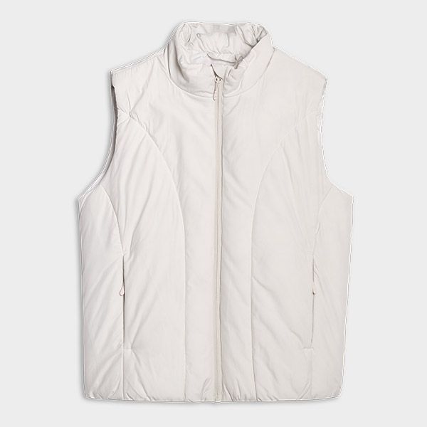 "Padded women's gilet with water-repellent finish and practical zipped pockets for outdoor activities."