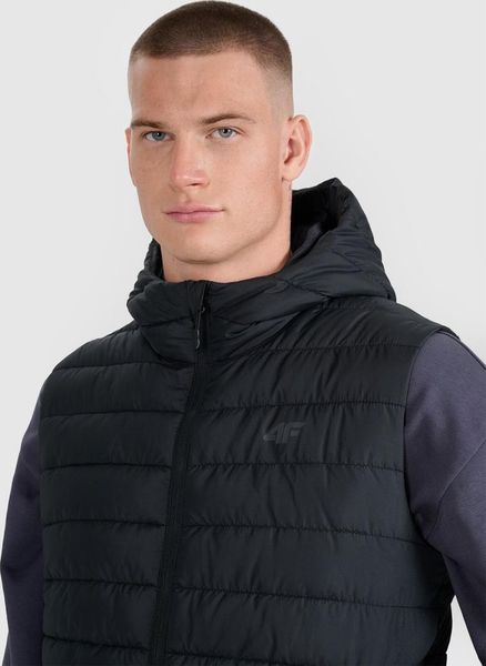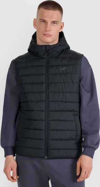 "The Vest Jacket M225 from 4F is the ideal choice for men looking for a functional and stylish solution for changeable weather. Equipped with an integrated hood and a full-Zip-Reiu00dfastener, this jacket not only offers comfort, but also practical protection against the elements. The u00e4uu00first layer of the jacket is made from a water-repellent material with a DWRimpru00e4gnation. This hydrophobic treatment ensures that water rolls off in droplets and does not penetrate the inside of the jacket."