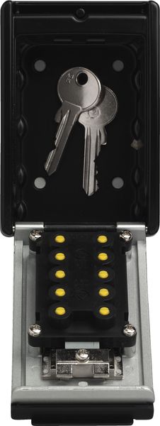 "Secure storage for keys and cards with individually adjustable numerical code and robust metal housing."