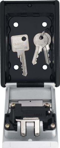 "The KeyGarageu2122 787 from Abus is the ideal solution for storing keys and plastic cards securely and conveniently. The robust metal housing offers protection against opportunist theft and is designed for wall mounting. With a capacity for up to 20 keys or 14 plastic cards, it offers enough space for your valuables. The integrated protective flap with sliding mechanism protects the number holders from the weather, while the individually adjustable, four-digit numeric code only grants access to authorized persons. The removable key hook is particularly practical, providing additional convenience when stowing the keys. The zincdie-cast closure flap provides additional security. The KeyGarageu2122 787 is ideal for use in protected outdoor areas and is ideal for changing user groups such as craftsmen, vacation guests or mobile care services. With dimensions of 80 x 120 x 45 mm, it fits unobtrusively into any environment."