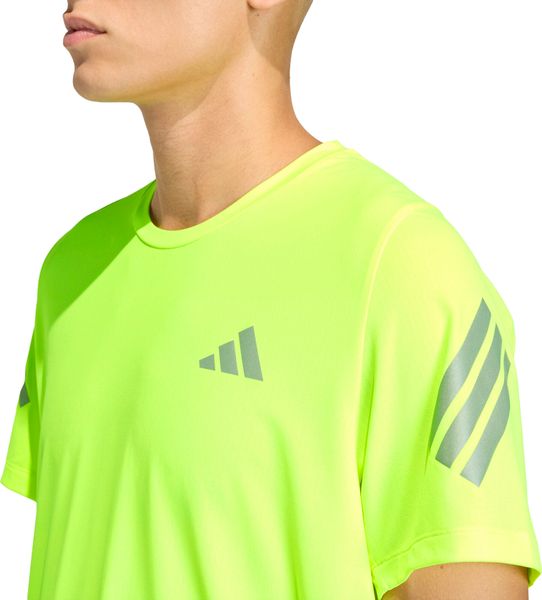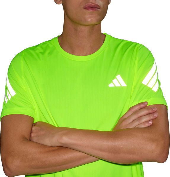 "Made from 100% recycled polyester, the T-shirt combines sustainability with performance. The single jersey fabric is not only lightweight, but also particularly durable, making it ideal for sporting activities. The reflective details and iconic adidas 3stripes branding give the T-shirt a dynamic look that will impress both on the running track and in your free time."