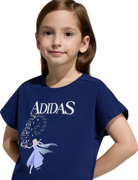 "The vibrant Disney graphic on the front, decorated with glitter prints, makes this Tshirt a real eye-catcher. It celebrates imagination and carefree play by symbolizing strength and independence. The brandingelements from adidas and Disney give the shirt a special charm that adds a touch of magic to your child's adventures."
