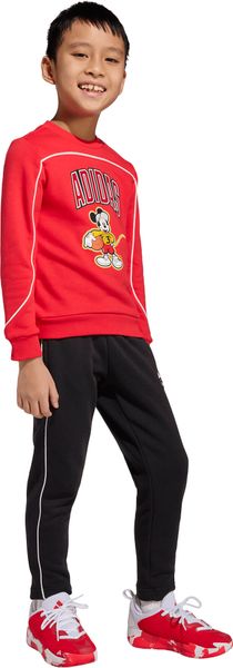 "The Adidas Disney Mickey Mouse jogger combines playful design with everyday comfort and is a must-have for every little adventurer. Inspired by the energy and passion of sports fans in the stadiums, this jogger features eye-catching Mickey Mouse graphics inspired by basketball. Made from soft French terry, the joggers offer a regular fit and a tapered leg shape that ensures optimum comfort both at play and in everyday life."