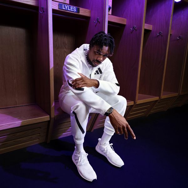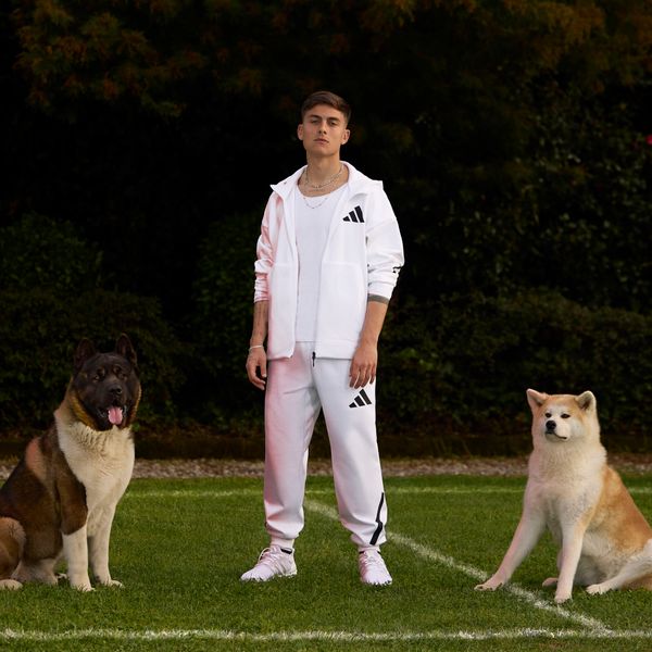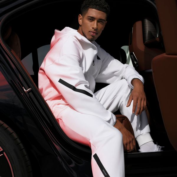 "The material is made from 57% recycled polyester and 43% cotton, which not only makes it comfortable to wear, but also makes a sustainable contribution. The matt, rubberized line print, inspired by pitch markings, underlines your enthusiasm for sport and team spirit. Whether you're warming up or watching a match, these trousers will help you to always be full of energy and motivation for your team."