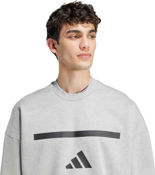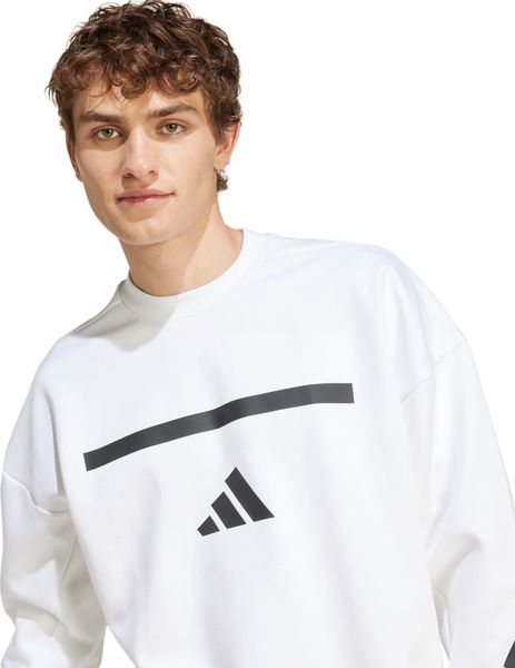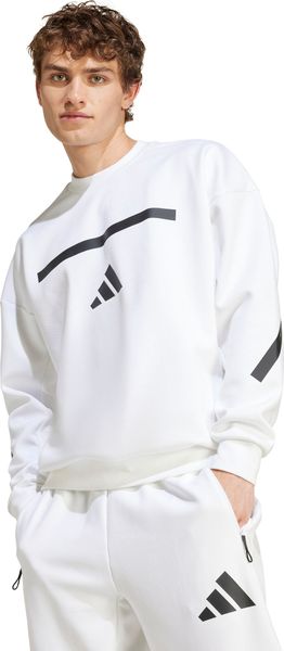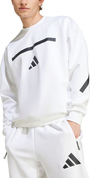 "The Adidas Zip.N.E. Sweatshirt is the ideal choice for all fitness and training enthusiasts who value comfort and sustainability. With its loose cut and round neckline, it offers full freedom of movement, while the three-layer double knit material reliably protects against cold. The matt, rubberized line print symbolizes the team spirit and makes this sweatshirt not only functional, but also stylish."