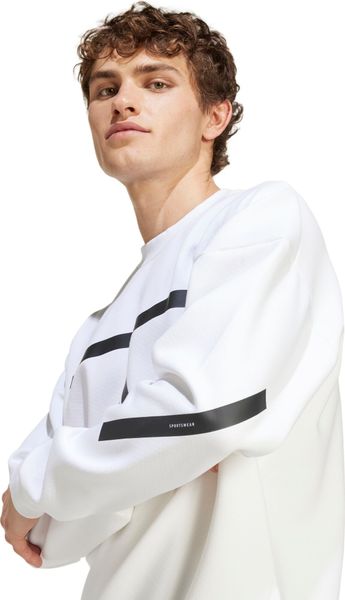 "Made from 57% recycled polyester and 43% cotton, adidas uses environmentally friendly materials that help to reduce the carbon footprint. The ribbed cuffs and hem ensure a comfortable fit. Thanks to the use of at least 70% recycled and renewable materials, the sweatshirt helps to reduce waste and reduce dependence on non-renewable resources"