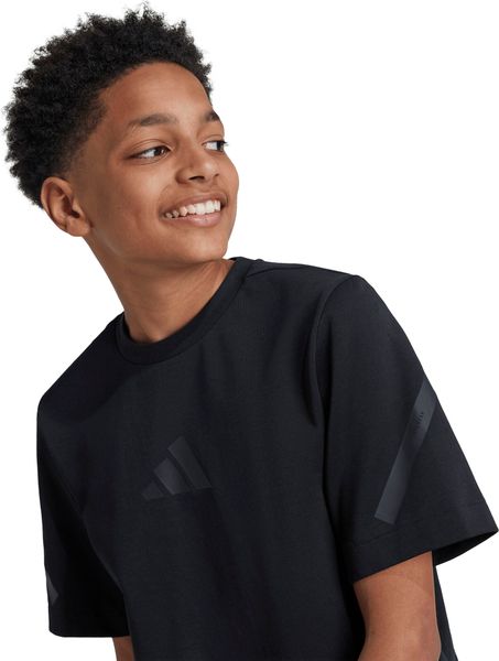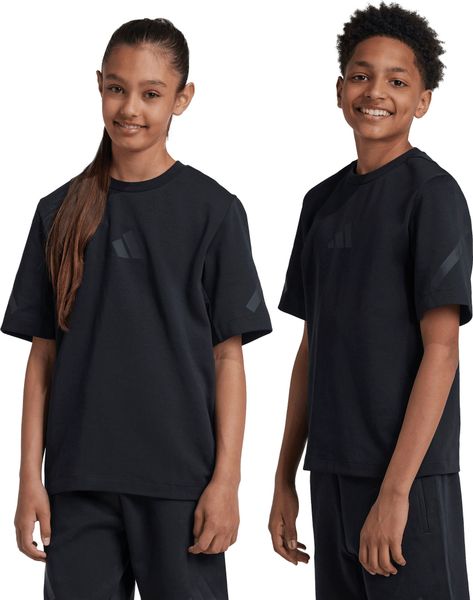 "Discover comfort and style with the Adidas Zip.N.E .TEE, a versatile T Shirt for fitness and training. This loose-fitting shirt is perfect for kids and teens who want to be comfortable both on and off the pitch. Made from a soft interlock material that contains 53% cotton and 47% recycled polyester, it is comfortable to wear and environmentally friendly. The round neckline and dropped shoulders ensure a loose fit that guarantees freedom of movement."