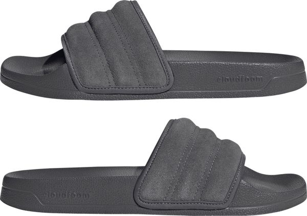 "A highlight of the Adilette is the Cloudfoam midsole, which provides excellent cushioning with every step and takes walking to a new level of comfort. The pre-shaped footbed also offers a luxurious feel that stays put all day long. The synthetic outsole offers support and stability on different surfaces."