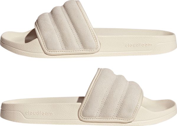 "Stylish and comfortable slides with Cloudfoam cushioning and iconic 3-Stripes for leisure activities."