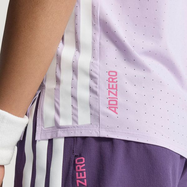 "Experience unmatched comfort and performance with the adidas Adizero Running T-shirt, designed specifically for runners and fitness enthusiasts. This ultra-lightweight and breathable running shirt is ideal for intense workouts and will help you overcome any challenge with ease. The slim, aerodynamic cut ensures that nothing will hold you back on the way to the finish line, while the round neckline provides additional comfort."