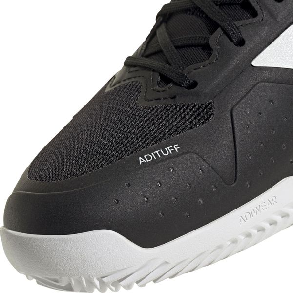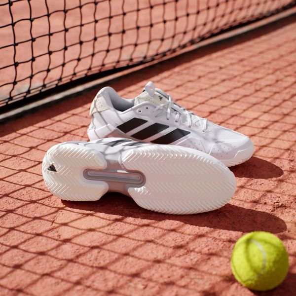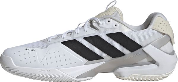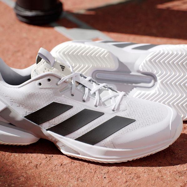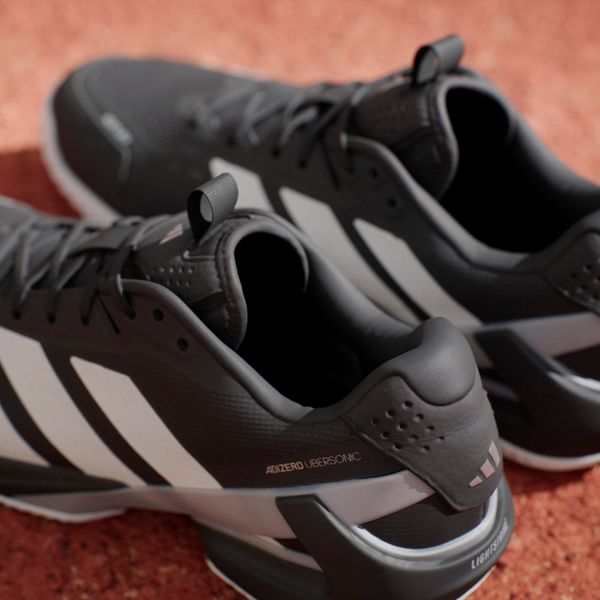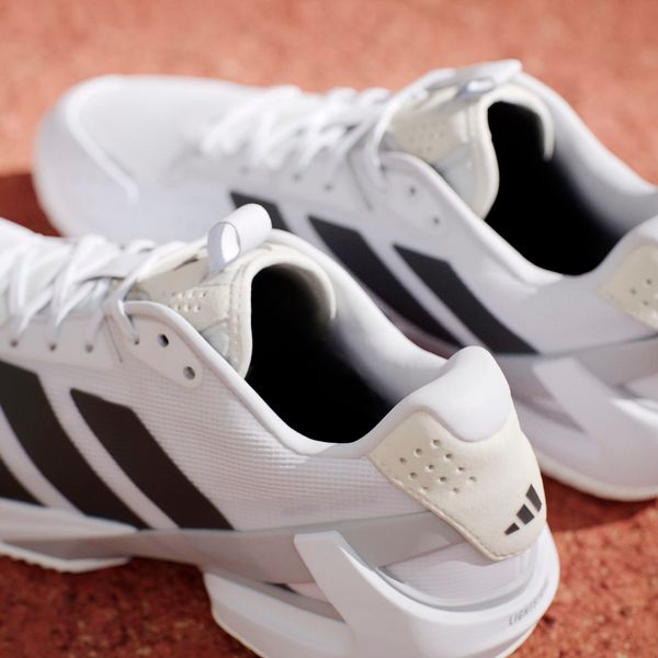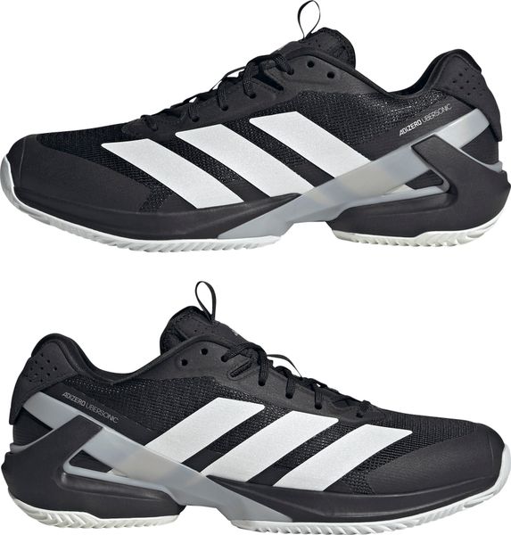 "Experience ultimate performance on the tennis court with the Adizero Ubersonic 5 Clay tennis shoes from adidas. These shoes are specially designed for clay courts and offer you the necessary support for fast lateral movements with their lightweight textile and synthetic upper. The reinforced mesh construction provides excellent ventilation and stability so that you can concentrate fully on your game."