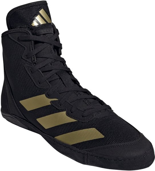 "Unleash your speed on the mat with the Adizero wrestling shoes from adidas, designed specifically for lightning-fast movements. These lightweight wrestling shoes give you the edge in every round. Thanks to the breathable textile upper, your feet stay pleasantly dry even during intensive training sessions, while the synthetic lining provides additional comfort."