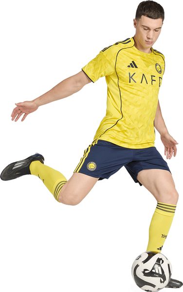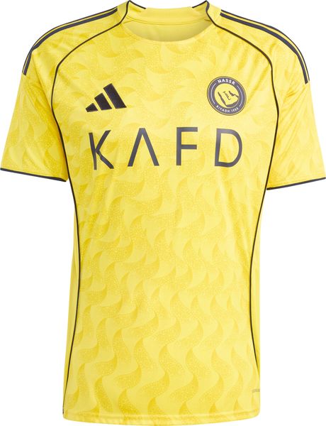 "Experience the fascination of Al Nassr FC with the adidas home jersey for the 2025/2026 season. Inspired by the glorious sun over Riyadh, this jersey shines in a stunning design that perfectly expresses the passion for your favorite club. With its slim fit and classic crew neck, it not only offers a modern look, but also optimum comfort."
