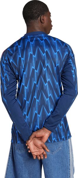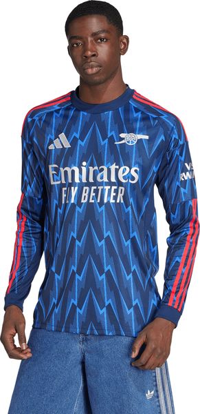 "Immerse yourself in the glorious history of Arsenal FC with the Arsenal FC 25/26 Away Jersey Longsleeve from adidas. This long-sleeved football jersey combines tradition and modernity by bringing back the iconic lightning bolt motif in a stunning light bluenavy all-overprint. Made from 100% recycled polyester, the slim-fit jersey with its crew neck not only provides an elegant look, but also makes a sustainable contribution to the environment."