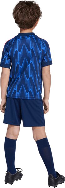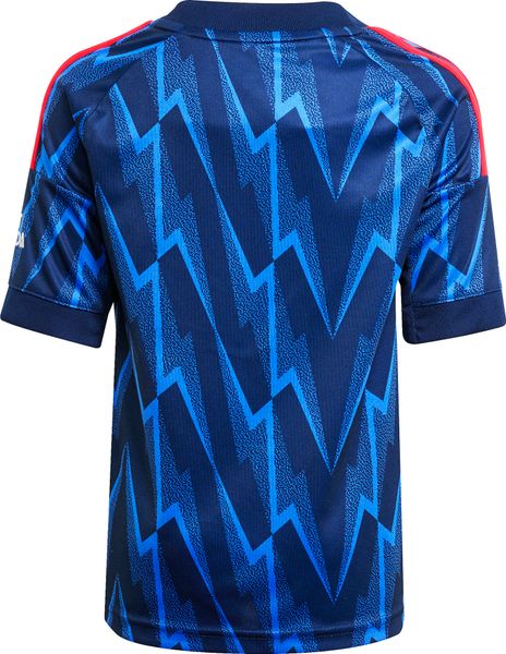"Immerse yourself in the fascinating world of Arsenal FC with the Arsenal FC 25/26 Away Kids Set from adidas. This set pays homage to the club's rich history and brings back the iconic Blitz motif in a striking all-over print. The regular fit and round neckline ensure a comfortable fit, while the 100% recycled polyester material is not only sustainable but also environmentally friendly."