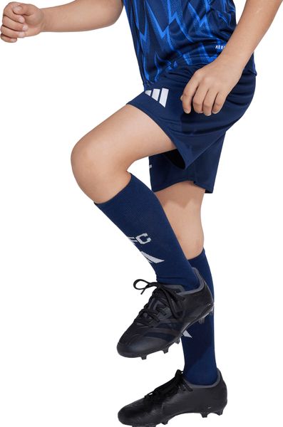 "The set is equipped with moisture-regulating AEROREADY technology, which ensures that your child stays dry and comfortable even during intense days of play. The shorts have an elasticated waistband for an optimum fit and freedom of movement. The design is rounded off with the Arsenal FC thermal print crest, which is proudly emblazoned on the chest and underlines the affiliation with the Gunners."