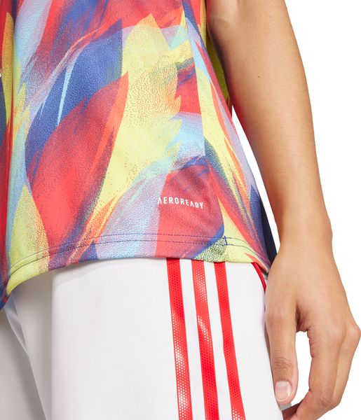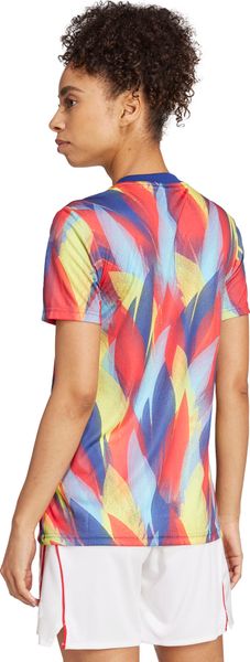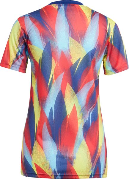 "The Arsenal FC 25/26 Pre-match Jersey from adidas brings the vibrant atmosphere of London straight into your closet. Inspired by the colorful hustle and bustle of the famous London Carnival, this football shirt impresses with its eye-catching colors and graphics reminiscent of carnival food. It is the same style worn by Arsenal professionals before kick-off and is perfect for leisure, fitness and training."