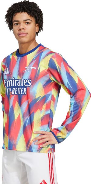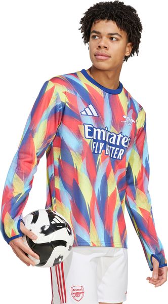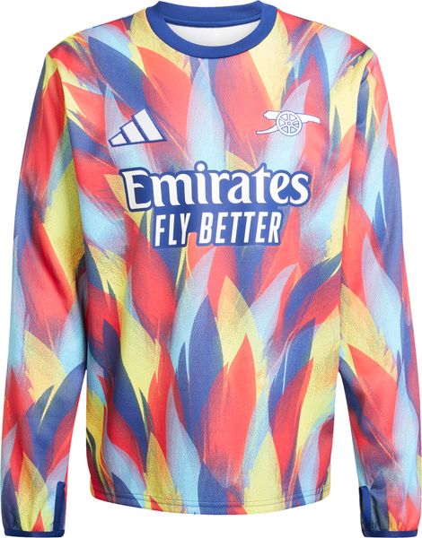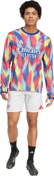 "Experience the perfect combination of football enthusiasm and colorful carnival spirit with the Arsenal FC 25/26 Pre-match Warm Top from adidas. This regular-fit, crew-neck top is not only a fashion statement, but also a functional garment worn by Arsenal FC professionals on cold match days. Made from 100% recycled polyester, adidas focuses on sustainability and comfort"