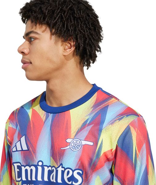 "The integrated AEROREADY technology ensures that moisture is effectively absorbed so that you always feel dry and comfortable, even during intensive training sessions. The eye-catching colors and costume-inspired graphics let you feel the vibrant atmosphere of the London Carnival, while the embroidered Arsenal FC club logo shows your loyalty to your favorite club"