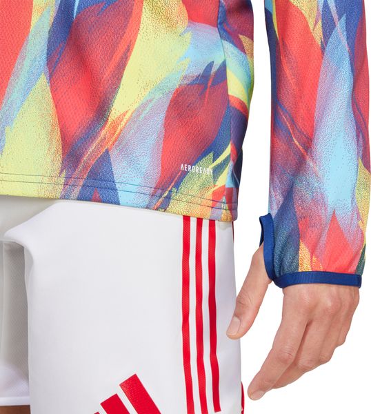 "Functional and colorful warm-up top with AEROREADY technology, inspired by the London Carnival."