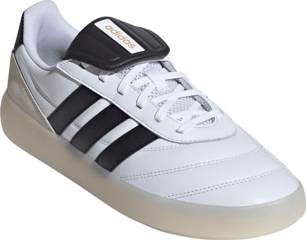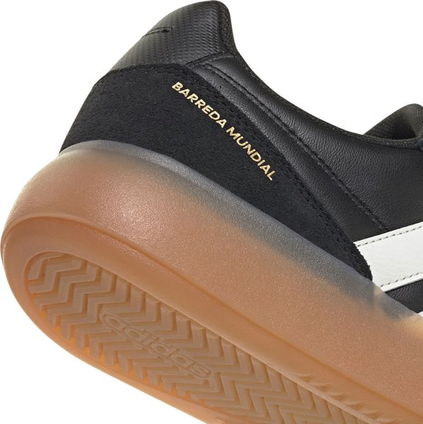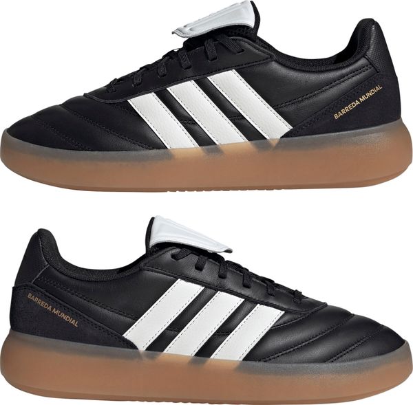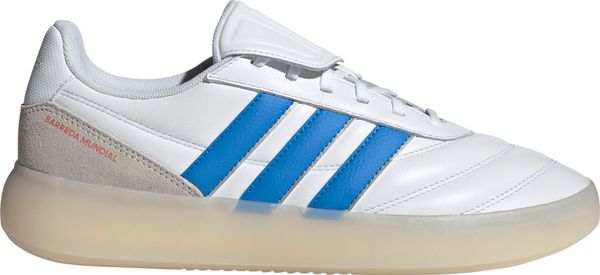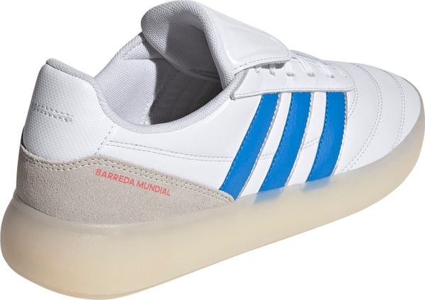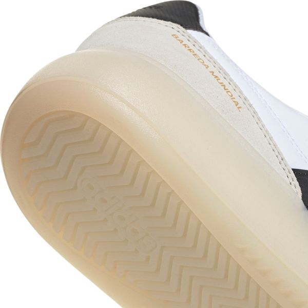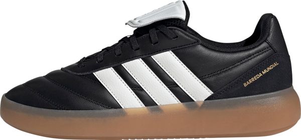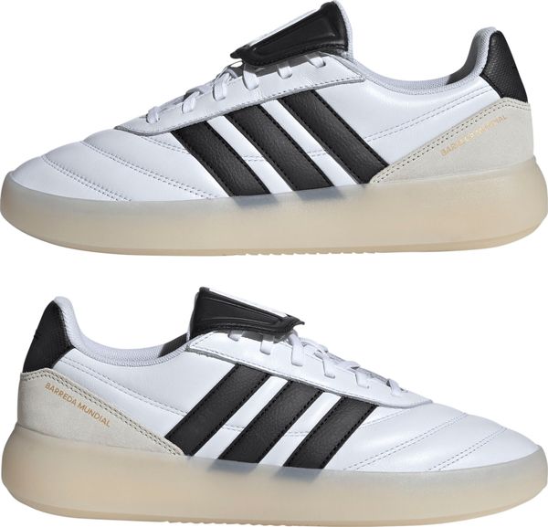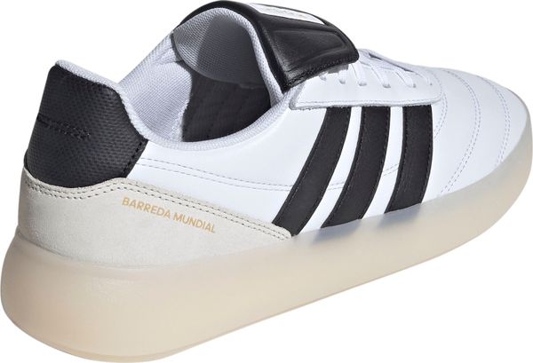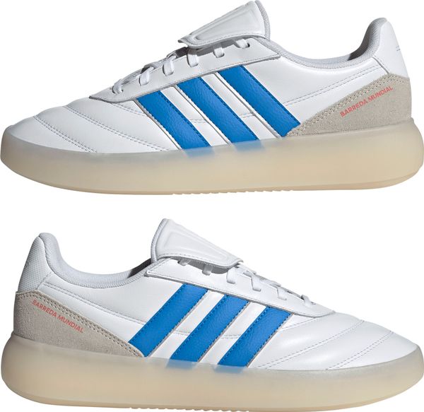 "Discover timeless elegance with the Barreda Mundial shoe from adidas, which is inspired by classic football aesthetics and seamlessly integrates modern innovations. With a high-quality combination of leather and synthetic materials, this shoe not only offers style, but also exceptional practicality. The regular fit and laces ensure a secure fit, while the textile lining and rubber outsole guarantee optimum comfort and durability. The modern cupsole construction gives the shoe a contemporary look that is perfect for everyday wear and leisure activities."