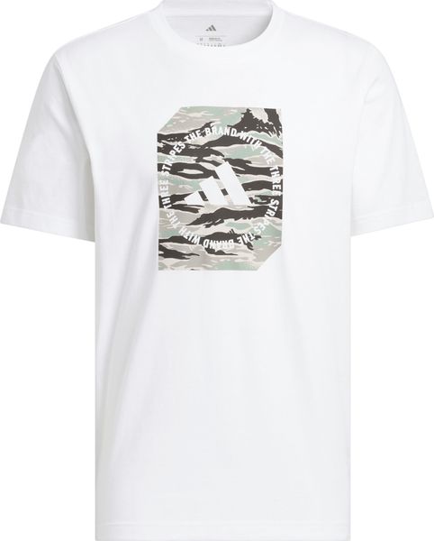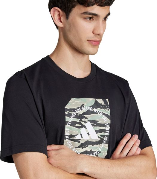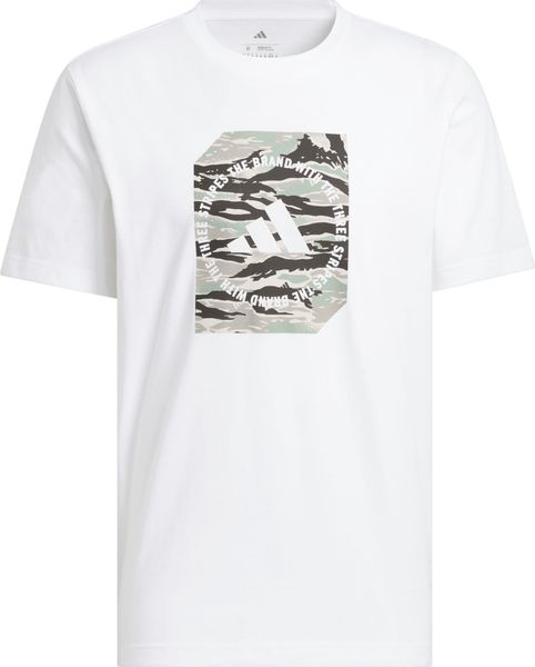 "The eye-catching, multicolored graphic on the front is a real eye-catcher and brings a touch of adventure to your everyday life. Inspired by classic European camouflage designs, the rubberized adidas graphic print gives the T-shirt a unique and modern look. Whether you're out and about in the city or in nature, this T-shirt will keep you looking and feeling good."