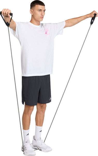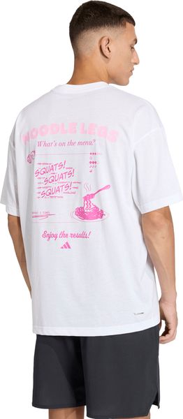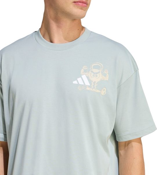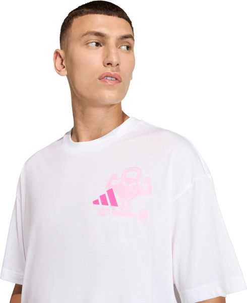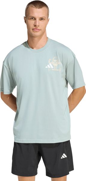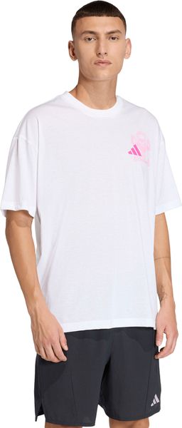 "The material made from 65% polyester, which is 100% recycled, and 35% cotton guarantees not only durability, but also a pleasant feel against the skin. The oversize fit allows for unrestricted freedom of movement, so you can move freely and without distraction. The vibrant training graphics and iconic adidas logo on the front and back give the T shirt a dynamic look that emphasizes your sporty style"