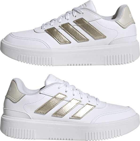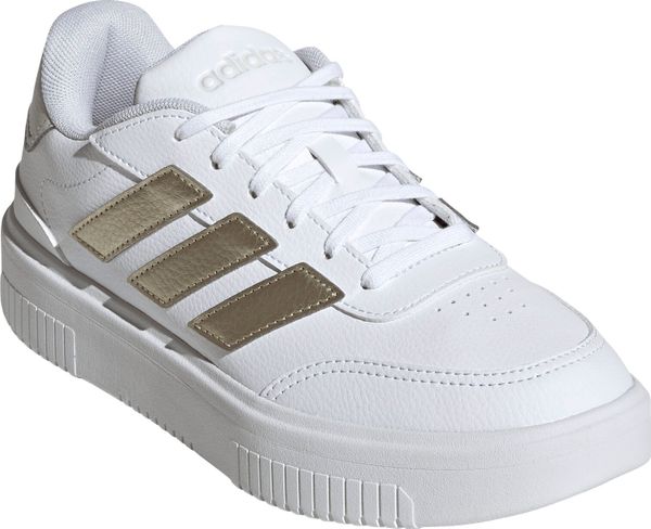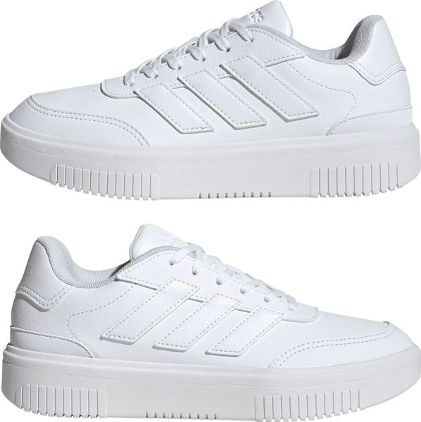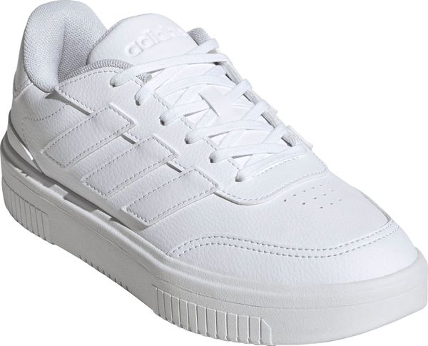 "The Courtblock shoes from adidas are the perfect companion for everyday wear and leisure time. With their eye-catching design, they attract everyone's attention and offer maximum comfort at the same time. The synthetic leather upper ensures a stylish look, while the regular fit and laces allow for an individual fit. The platform midsole not only gives you a little more height, but also ensures a pleasant walking sensation. Thanks to the hard-wearing rubber cupsole, these shoes are ideal for everyday use and offer excellent stability and grip. Pair them with your favorite jeans or a casual dress and make a subtle statement that perfectly underlines your style"