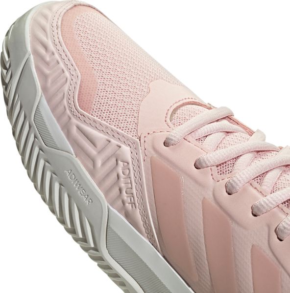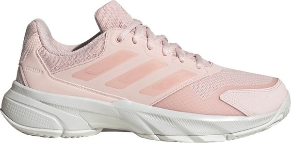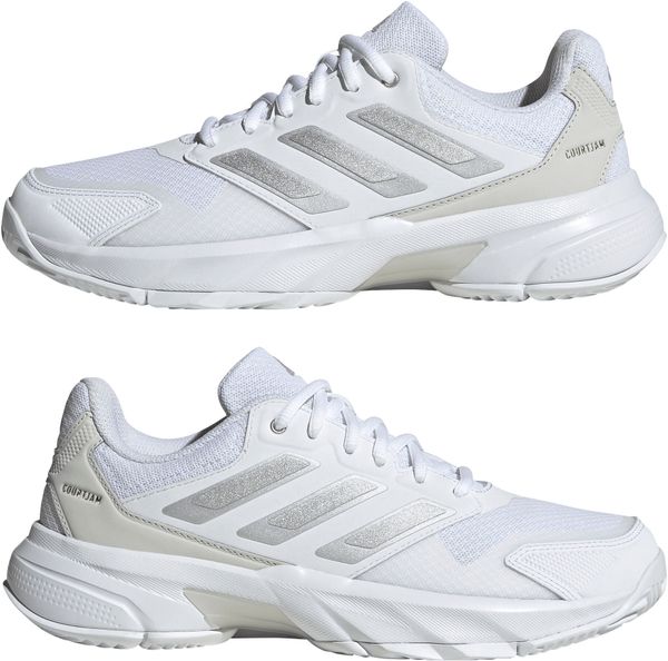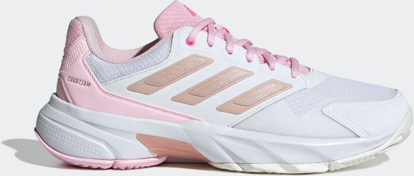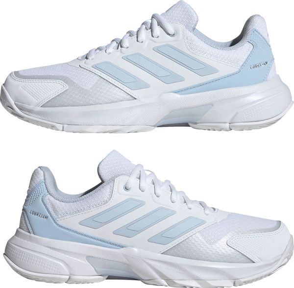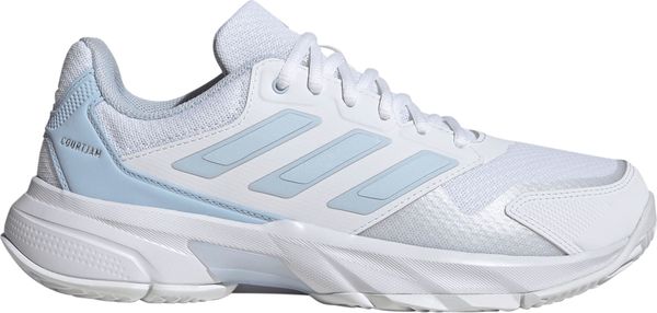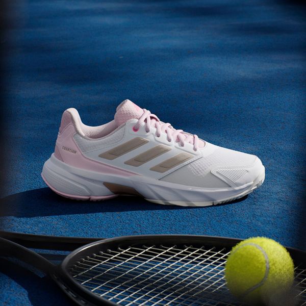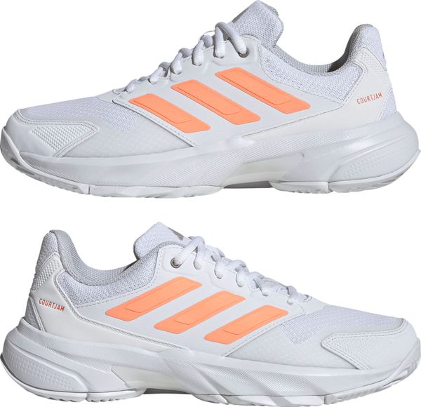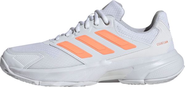 "Experience unparalleled comfort and control on the court with the Courtjam Control 3 tennis shoes from adidas. These shoes offer a regular fit and feature a breathable mesh upper for optimal airflow. The innovative Bounce midsole delivers a springy feel that supports you with every step. The abrasion-resistant Adituff toe area increases durability, while the Adiwear outsole with an interrupted herringbone tread pattern ensures reliable grip during fast movements."