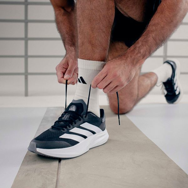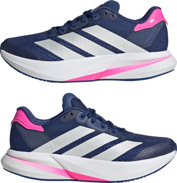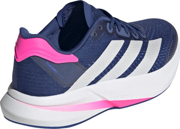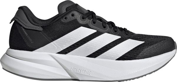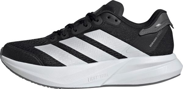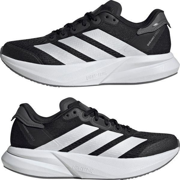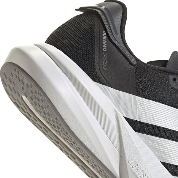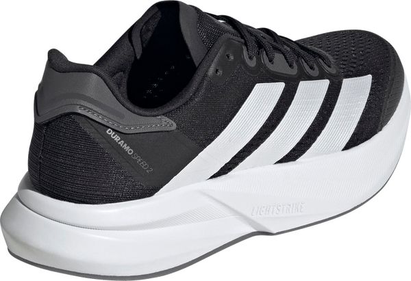 "The Duramo Speed 2 running shoes from adidas are the ideal companion for anyone who wants to reach their running goals quickly. Weighing just 224 g in size 38 2/3, they are particularly lightweight and offer a dynamic running feel thanks to the responsive Lightstrike cushioning. The rubber outsole with TPU element provides excellent traction, whether on the road or the track, and therefore supports safe running on any surface."