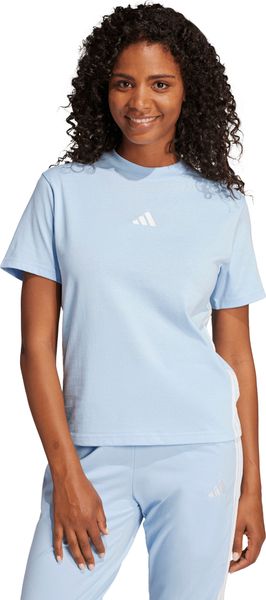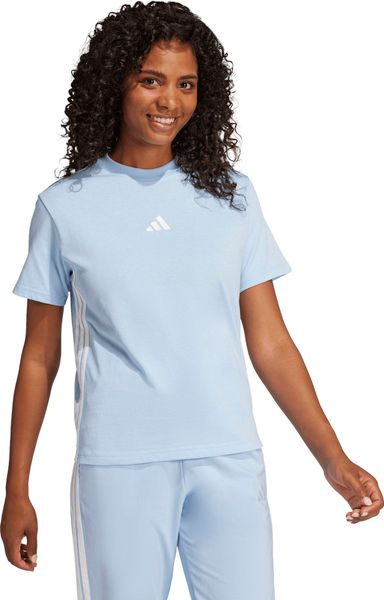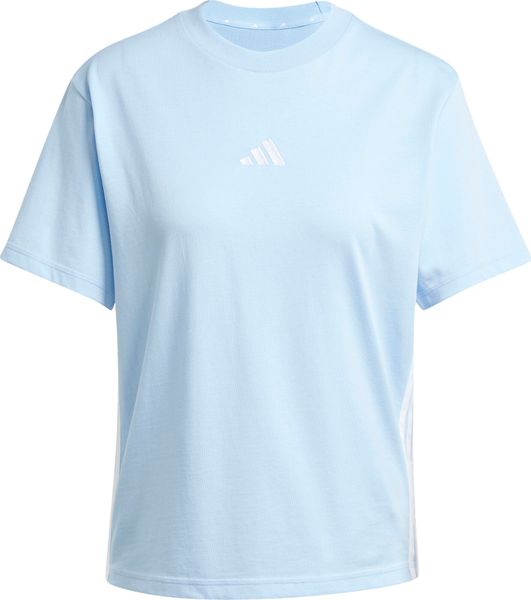 "Whether you're working out at the gym or taking a leisurely stroll through town, the Tshirt is versatile and adds a touch of sporty elegance to any outfit. Combine it with your favorite jeans or comfy joggers for a trendy look that is both stylish and functional. The Essentials 3-STRIPES T-Shirt is not only a fashion statement, but also synonymous with adidas quality and unmistakable style."