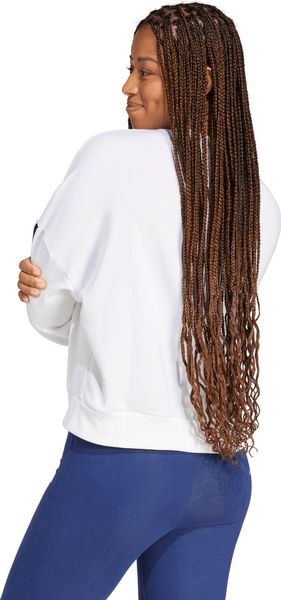 "This sweatshirt is not only stylish, but also environmentally friendly. It is made from at least 70% recycled and renewable materials, including 55% cotton, 36% recycled polyester and 9% viscose. By using recycled materials, adidas is helping to reduce waste and minimize the use of non-renewable resources. Combine the sweatshirt with your favorite jeans or sweatpants for a casual, trendy look that is suitable for both everyday wear and sporty activities"