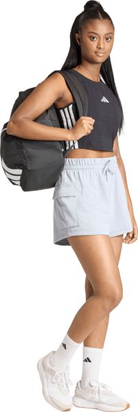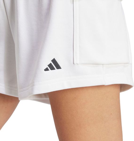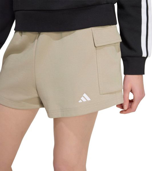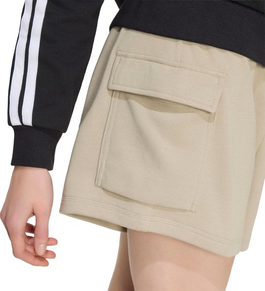"The shorts are equipped with practical flap pockets at the front that offer plenty of space for your essentials, while the subtle, embroidered 3stripes logo adds a stylish touch to the design. The high waistband ensures extra comfort and a secure fit, whether you're working out at the gym or running errands. With these cargo shorts, you are not only making a fashion statement, but also helping to reduce waste and conserve resources"