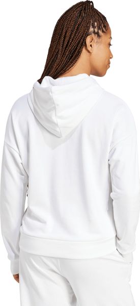 "A special highlight is the subtle 3stripes logo on the chest, which underlines the sporty look of the hoodie. Practical details, such as the drawstring pocket, provide space for small essentials and the ribbed cuffs and hem ensure a perfect fit. With a material mix of 70% cotton and 30% recycled polyester, this hoodie combines sustainability with functionality and is ideal for fitness & training."