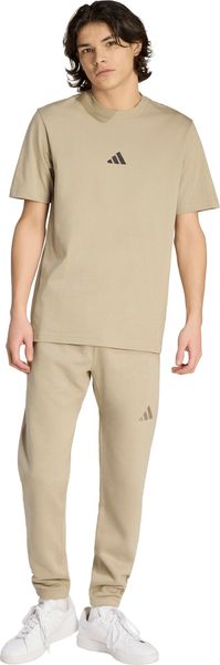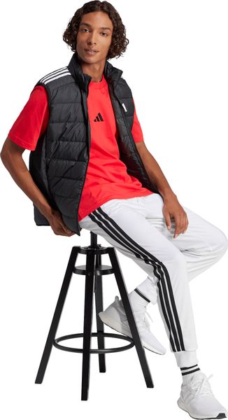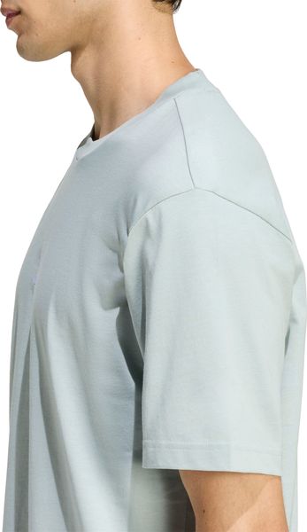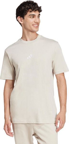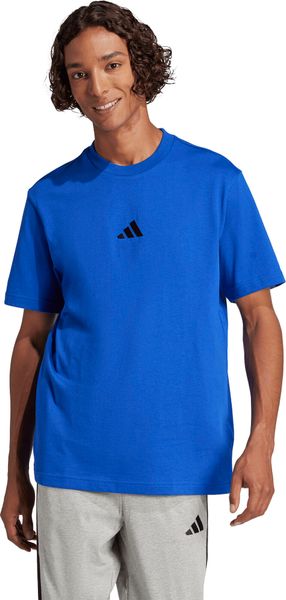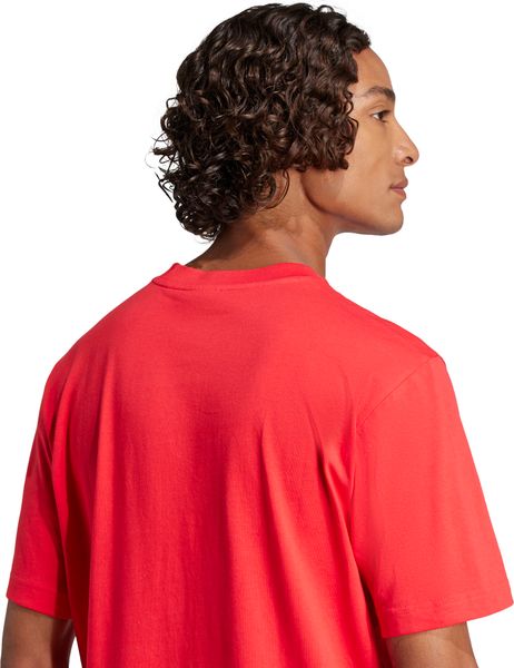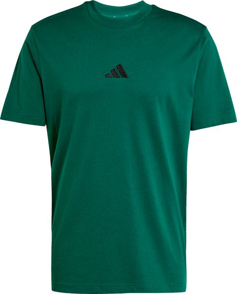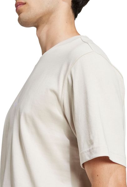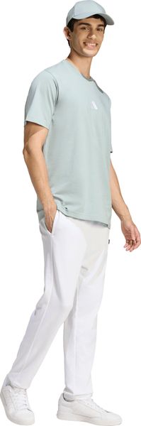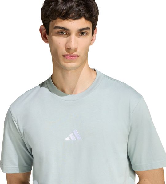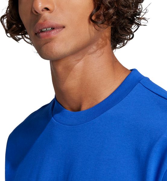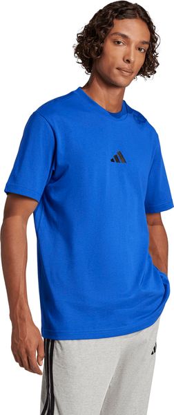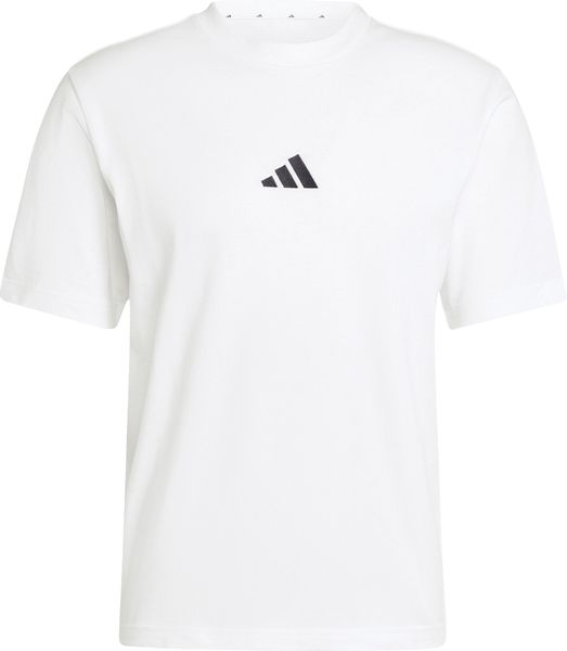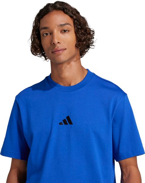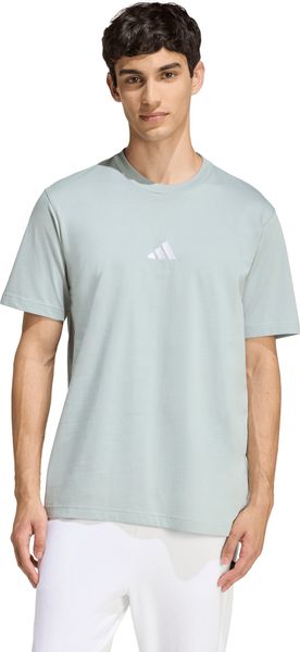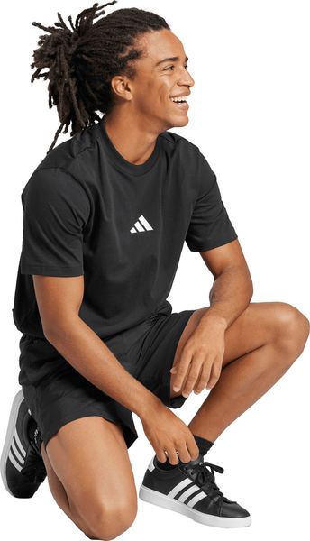 "The Essentials Small Logo Single Jersey Tee from adidas is a versatile basic that no closet should be without. Made from 100% soft cotton, it offers a comfortable feel thanks to the single jersey, which is ideal for fitnessand training sessions. The regular cut and ribbed round neckline ensure a comfortable fit, while the slightly dropped shoulders give the T-shirt a casual touch. The embroidered 3stripes logo on the chest underlines the sporty look and makes it the ideal companion for any occasion, whether for everyday wear or a workout."