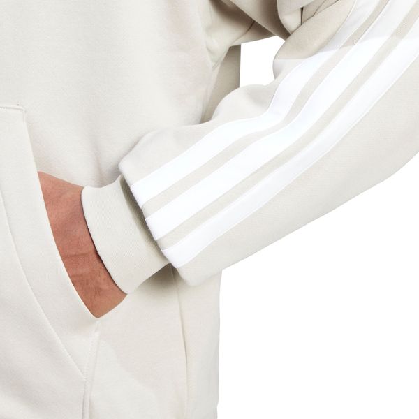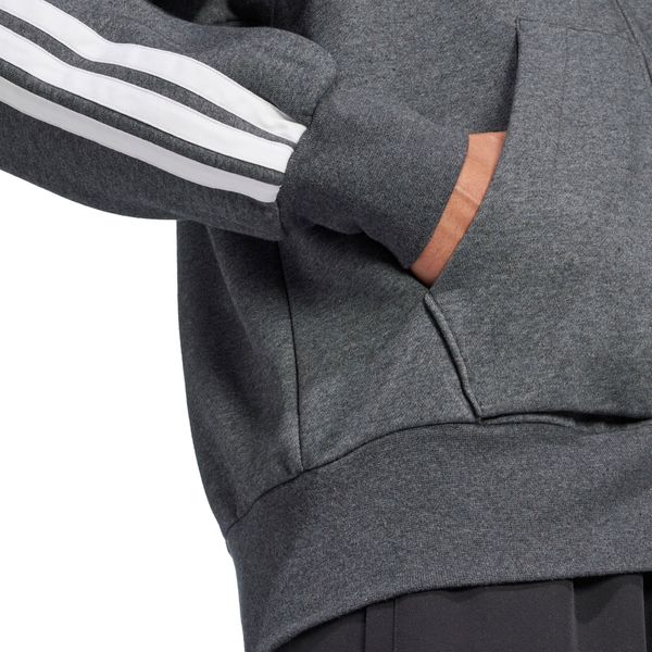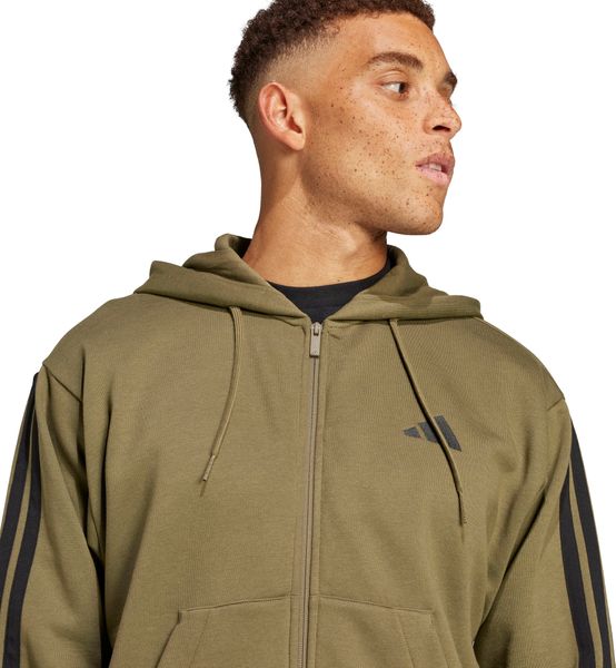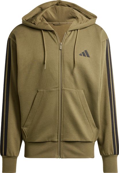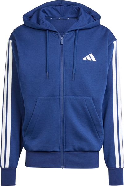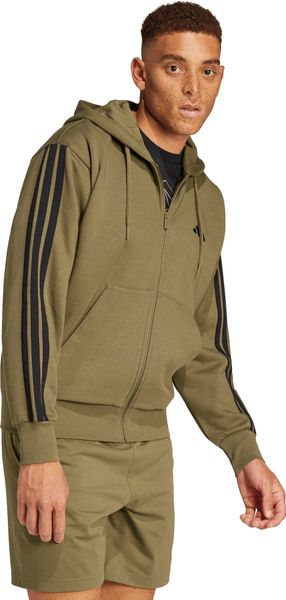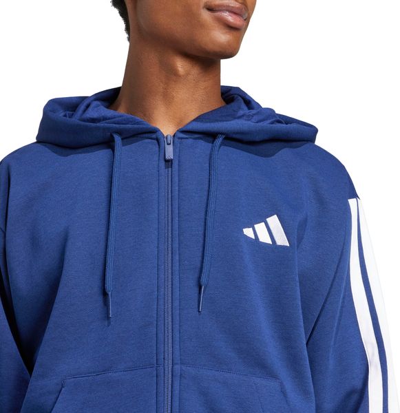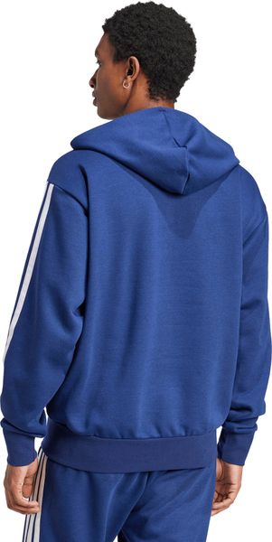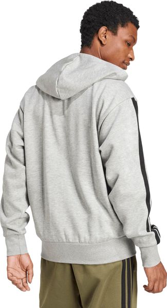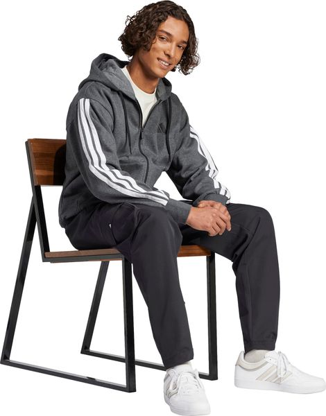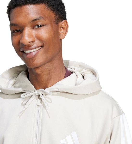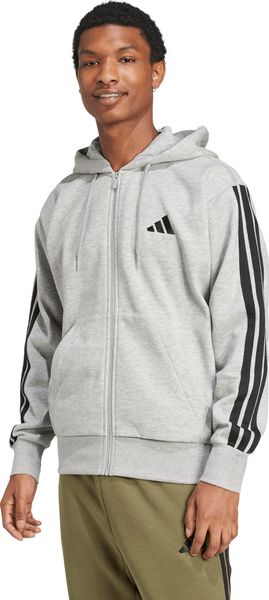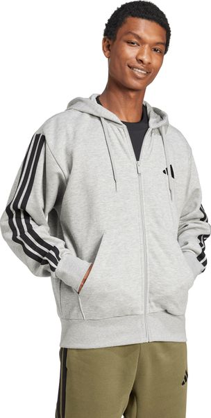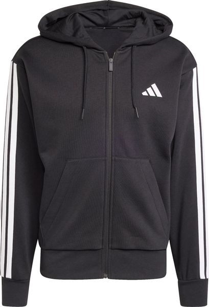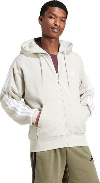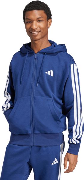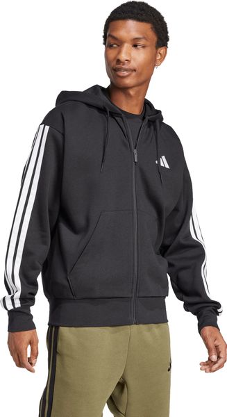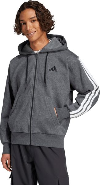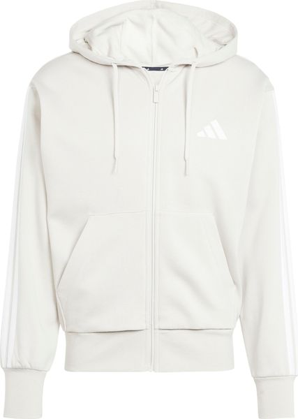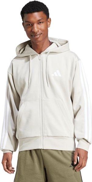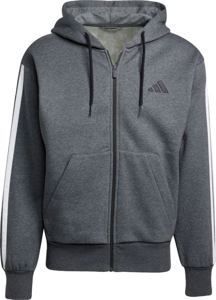 "The Essentials Three Stripes Fleece Hoodie from adidas is the ideal companion for anyone who doesn't want to sacrifice comfort and style even on colder days. This hooded jacket impresses with its fluffy inside, which ensures cozy warmth. Thanks to the regular fit and the practical collar pockets, it not only offers freedom of movement, but also space for small items. The full-length zip and the hood with adjustable drawstring allow you to adjust it to your individual needs."