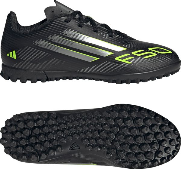 "The regular fit and classic lacing guarantee a secure hold, while the robust rubber outsole with strategically placed studs provides excellent traction and stability on artificial turf. These shoes are not only functional, but also stylish and will make any young footballer a star on the pitch. With the adidas F50 Club Turf football shoes, every game becomes an unforgettable experience."