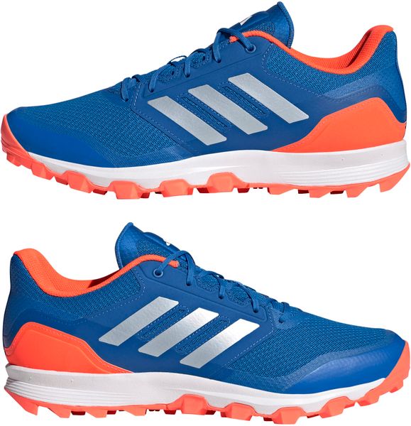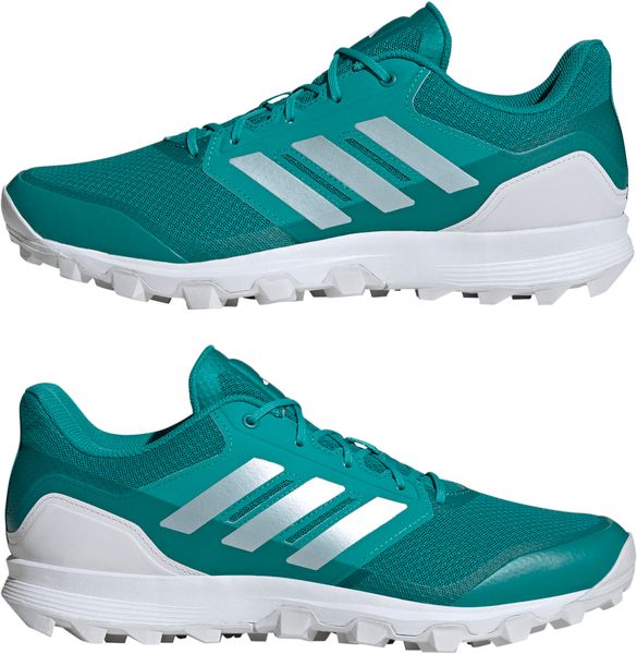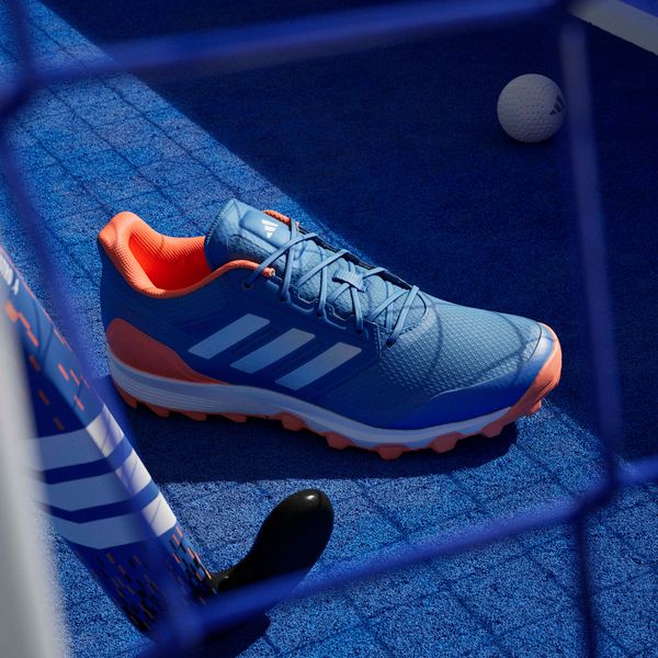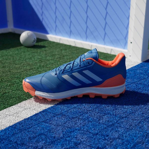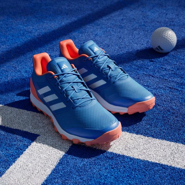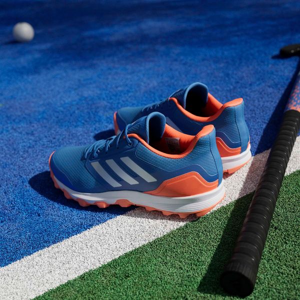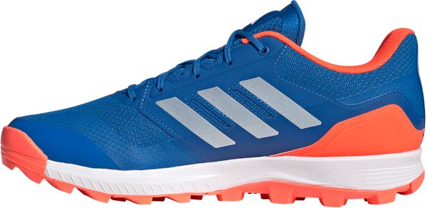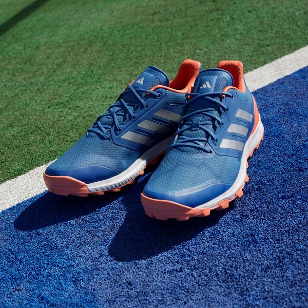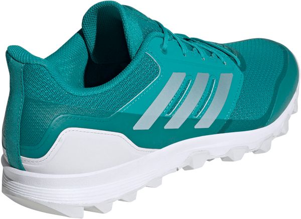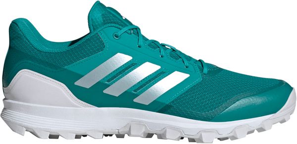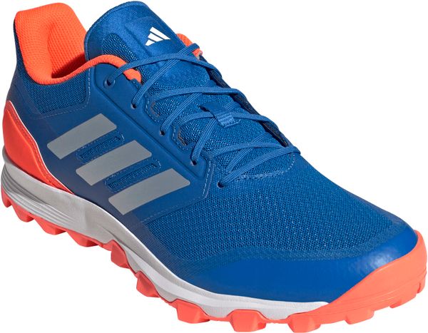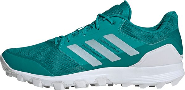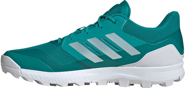 "The adidas Flexcloud 2.1 field hockey shoe is the perfect companion for anyone who wants to concentrate fully on their game. With its breathable upper material made of Air-mesh, it ensures a pleasant foot climate, while the Cloudfoam midsole provides excellent cushioning and comfort. A robust foiloverlay provides additional support and increases the durability of the shoe. The TPUtoe cap effectively protects against the impact energy of the ball and contributes to durability."