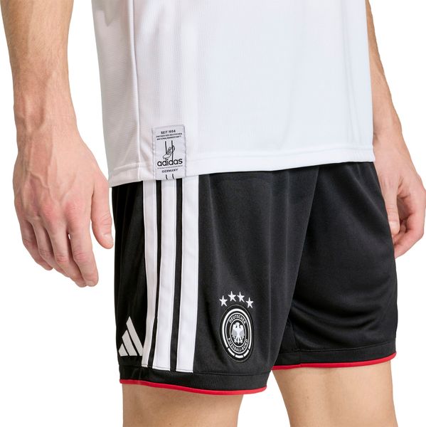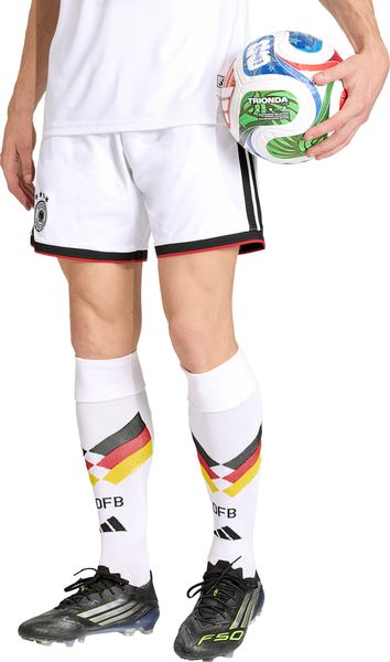 "The Germany 26 Home Authentic Shorts from adidas combine tradition and innovation and are an essential piece of clothing for every football fan. With their regular fit and mid-rise waistband, these shorts offer optimal comfort and freedom of movement, whether on the pitch or in leisure time. The durable pique material construction made from 100% recycled polyester ensures a lightweight feel and underlines adidas' commitment to sustainability."