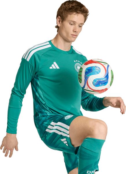 "The Germany 26 Goalkeeper Home Jersey with long sleeves from adidas is specially designed for the requirements of modern goalkeepers. Developed with the insights of professionals, this jersey offers a perfect balance of ideal fit and freedom of movement. Thanks to the innovative CLIMACOOL technology, sweat is quickly dissipated and absorbed, which ensures a pleasant cooling effect, especially in heated game situations."