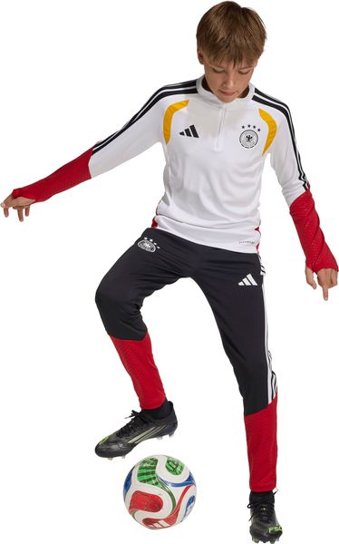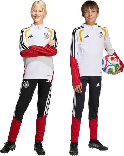 "The Germany 26 Tiro training pants from adidas are the perfect choice for young football fans who are always ready for action. Made from a material with mechanical stretch, they offer both performance and comfort, allowing children to move freely. Thanks to the innovative FORMOTION technology, the slim-fit trousers adapt to children's movements and provide optimum support when playing. The practical drawstring fastener makes it easy to adjust the fit, ensuring a secure fit even during intensive training sessions. These training pants combine stylish design with high functionality on and off the pitch and are a must-have for every young athlete."