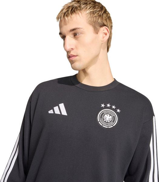 "With its regular fit and ribbed trims, it is versatile and can be worn on its own or combined with other garments. The minimalist look is complemented by the Performance logo and the iconic adidas 3 stripes, which together with the DFB crest create a sleek and effortless style. This sweatshirt is perfect for everyday wear and offers full freedom of movement without sacrificing style."
