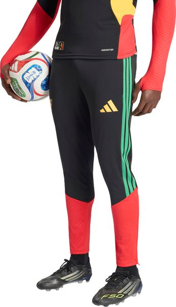 "With their slim cut and mid-rise waistband, these training pants ensure a secure and comfortable fit. The adjustable drawstring allows for an individual fit so that you can concentrate fully on your training. The adidas logo and the association crest give the trousers an authentic touch. Whether training for the next big match or a casual game with friends, these vibrant training pants bring the rhythm of reggae music to the pitch."