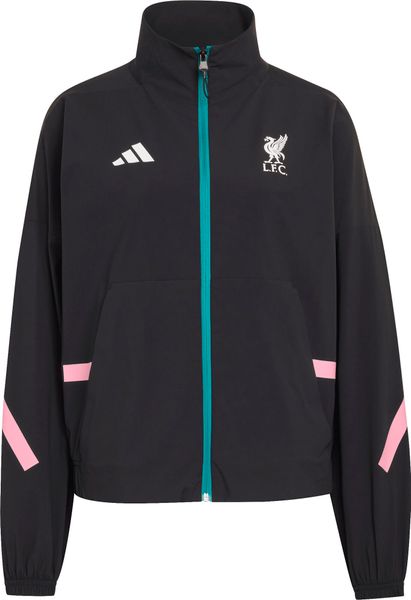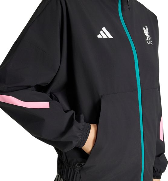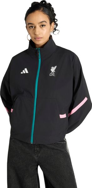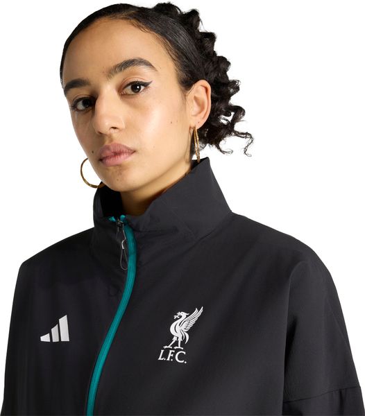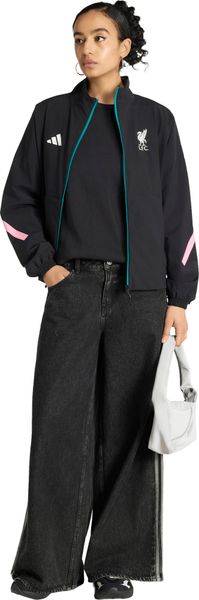 "Stylish adidas jacket for Liverpool FC fans that combines functionality and fashion with recycled material and sporty design."
