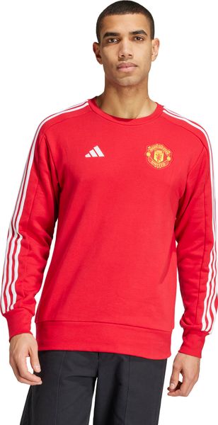 "Show your fan love for Manchester United even on cooler days with this stylish sweatshirt from adidas. Made from 100% high-quality cotton, it offers ultimate comfort and warmth thanks to the soft French terry material and ribbed cuffs. The regular fit and ribbed crew neck ensure a comfortable fit, while the embroidered Manchester United club logo is proudly displayed on the chest and underlines your support for the Red Devils. Whether combined with jeans for a casual everyday look or with tracksuit bottoms for sporty activities, this sweatshirt is versatile and a must-have for every loyal fan."