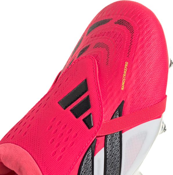 "Experience the perfect combination of innovation and tradition with the Predator Pro Fold-over Tongue Soft Ground football boots from adidas. These shoes have been specially developed to give you precise ball control on the pitch. The fold-over tongue is legendary and ensures a smooth kicking surface that helps you with powerful and precise shots. The built-in NanostrikePro technology offers an optimal synergy between fit and grip, while the soft and lightweight mesh with integrated haptic areas further improves your shooting precision"